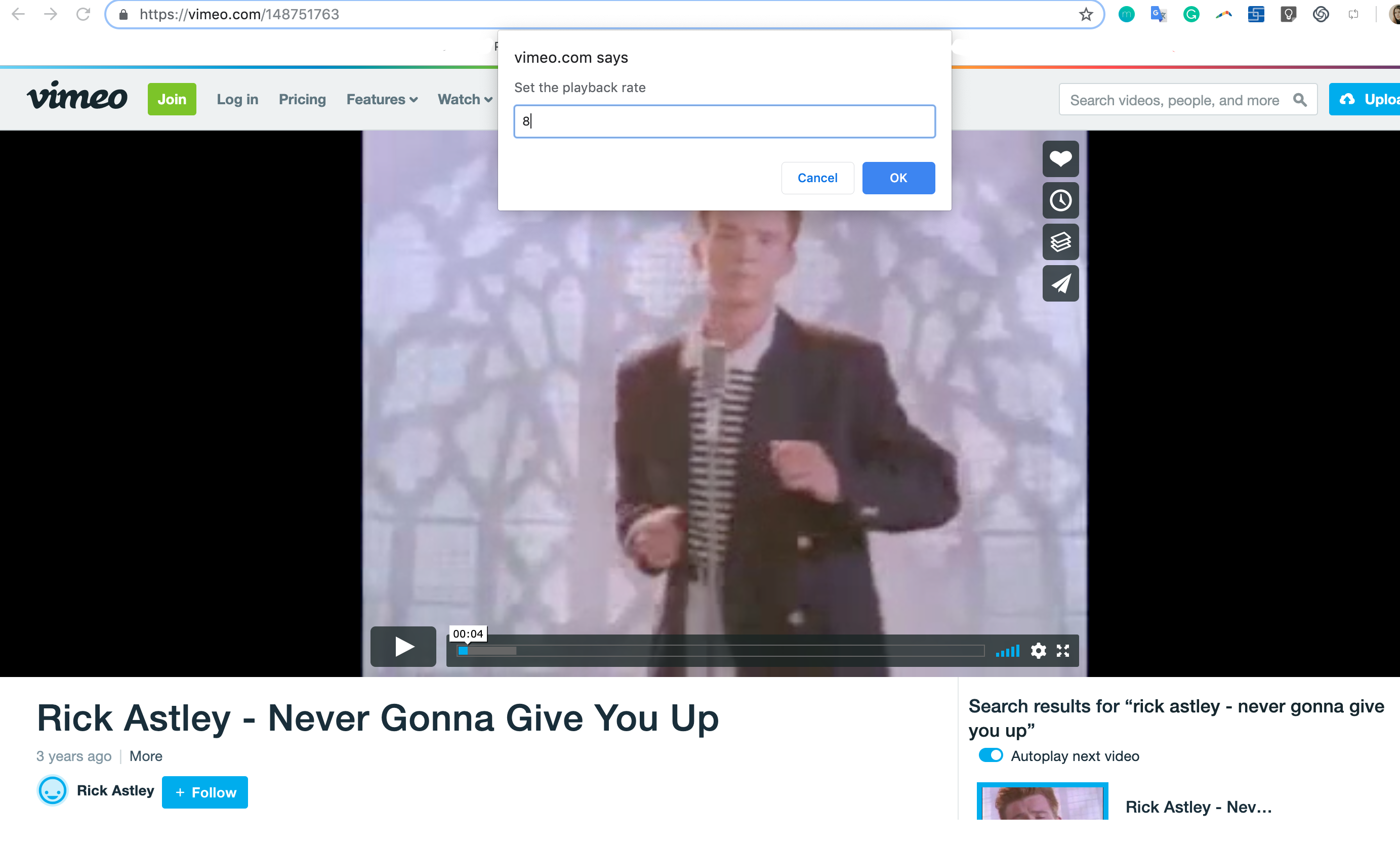 To see the absolute madness of Rick Astley – Never Gonna Give You Up at 8x speed click here.