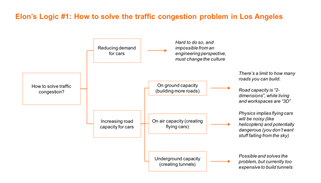 This helps you have a holistic approach to the problem, and generate some great ideas, like Elon Musk.