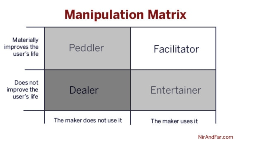 I really enjoy this simple framework “Manipulation Matrix” created by Nir Eyal.