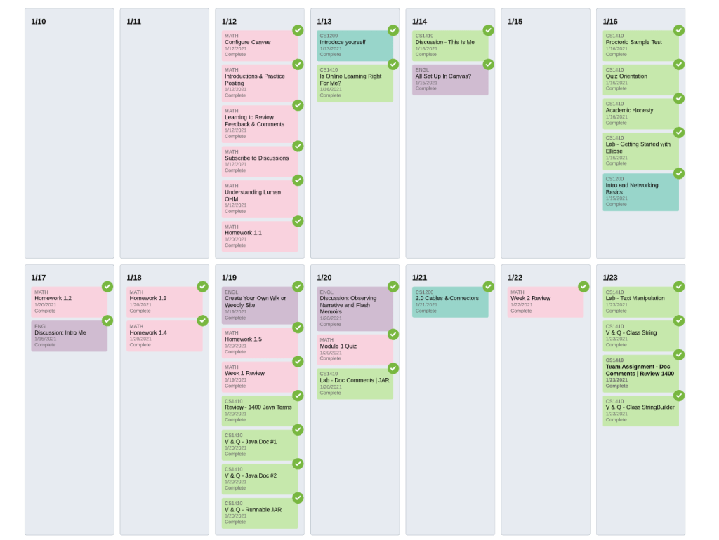 One of my fantastic colleagues, created a plan by creating a calendar to visualize and successfully complete his course workload.