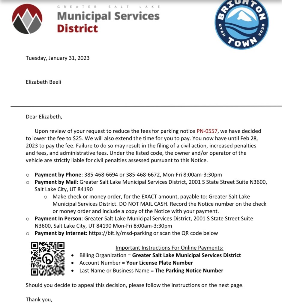 On Sunday, Jan 29th, the cities police chief and ticket contesting office received the below email.