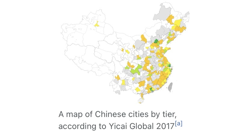 In China, there’s a ranking system for each city based primarily on GDP and population. For example, Shanghai and Bejing are tier one cities.
