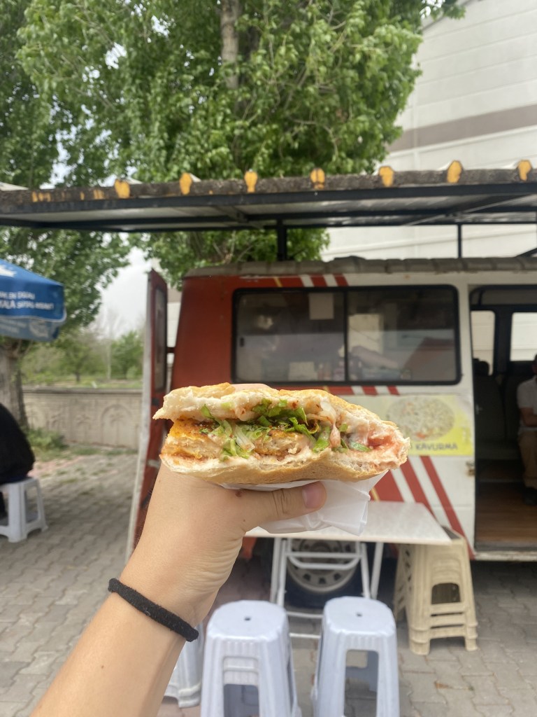 - Sandwich – I found a food truck and got a Kavurma sandwich (lamb, lettuce, mayo, and sweet chili sauce/ketchup alternative) and a Tavuk sote sandwich, described as a chicken stew.