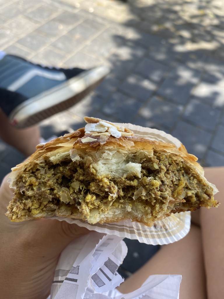 - Boulangerie Anneessens – This was quite an experience. This boulangerie had an incredible range of pastries. I got a few standard items, like a croissant, and then the most unusual pastry I’ve ever encountered—it had chicken, spices, walnuts, and was definitely Middle Eastern-inspired.