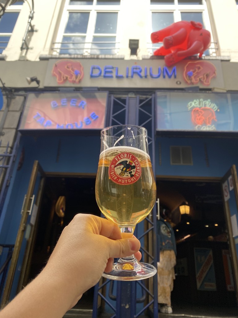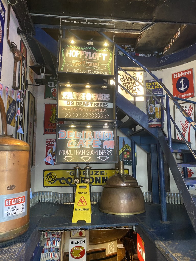 - Delirium – This is a must-visit in Belgium. Situated in an alley next to the iconic Manneken Pis statue (which, as one of Belgium’s highlights, tells you about all you need to know about why missing Belgium on your travel list isn’t a huge loss). The beer selection is world-class, with over 2,008 choices. I had the first beer I’ve ever wanted to order a second of—a wheat, fruity 4.5% passion fruit beer for 6.10. I was sad to find that the same item ordered from the Delirium Café in Asheville, NC, didn’t taste at all similar.