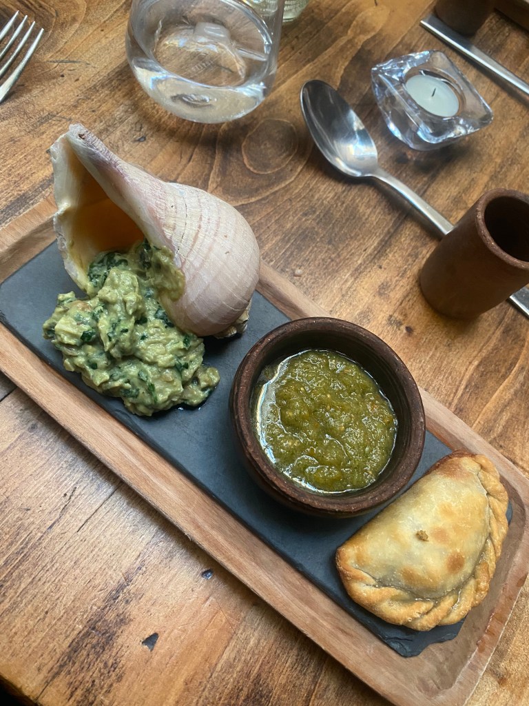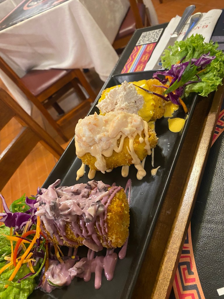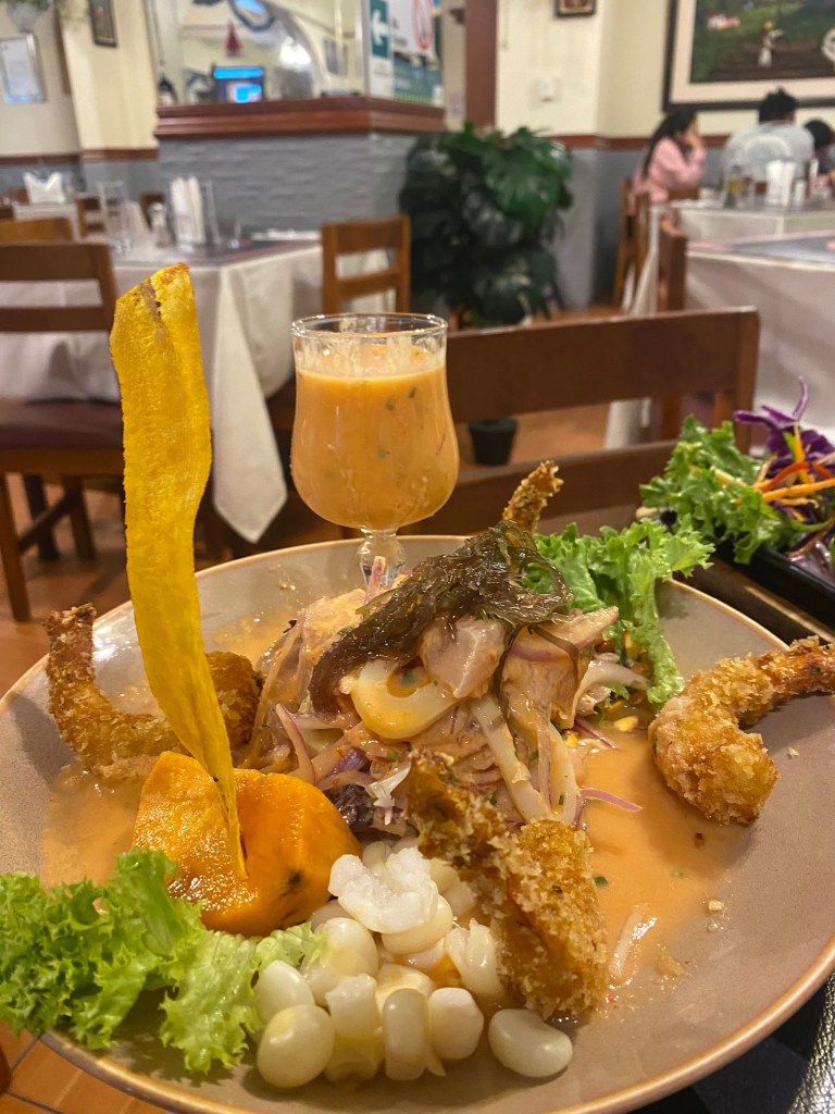 - El Ají Seco – Very interesting Peruvian food. We got their clams covered in cheese (would not recommend), ceviche with fried shrimp which was quite good, mashed potato stuffed with avocado and various proteins (octopus, shrimp, chicken) on top. Warm avocado has no place in my palate.
