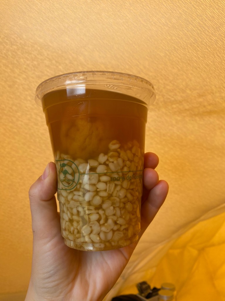 - Mote Con Huesillos – As my friend aptly described, this is Chilean boba. It is made of mote (shelled wheat), huesillo (sun-dried peaches) and peach syrup with sugar and cinnamon sticks. Found in the park at Plaza de Armas Arturo Prat.