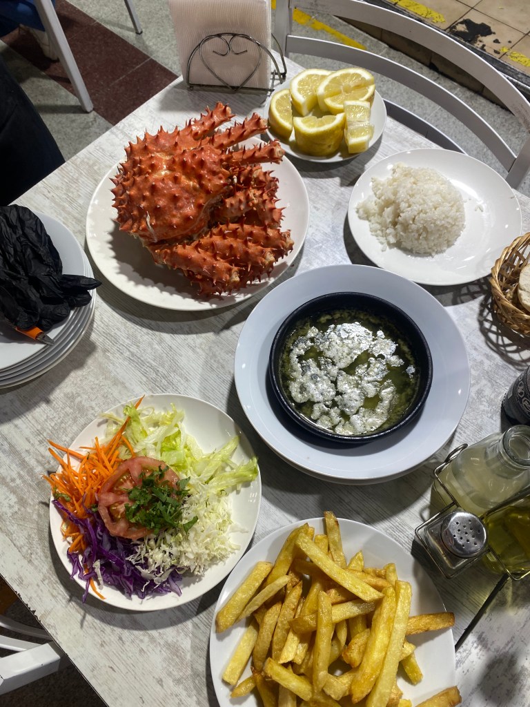 - Pailas Marisol (I think) – We went to the Central Market with the ambition of eating king crab. For $70 we had an entire king crab, bread, ceviche, wine, fries, a salad. Everything but the crab was below average. Apparently a bunch of these restaurants share a back kitchen but different restaurant fronts. It was shocking the number of restaurants below a 4 star rating.
